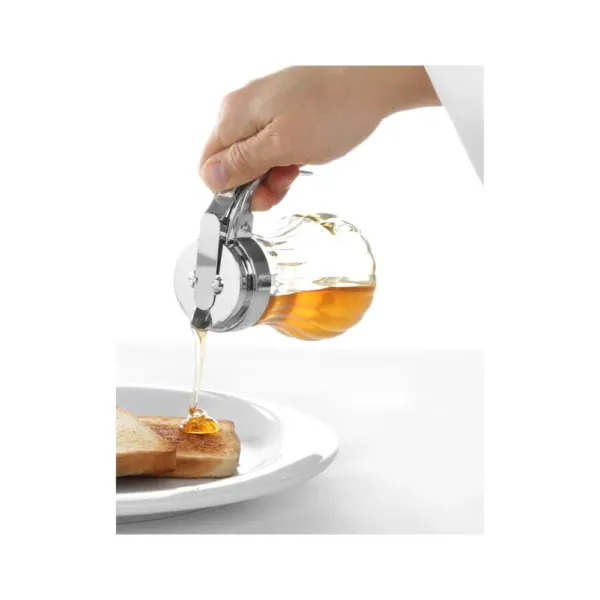 Dispenser miere sticla, capac inox, maner cromat, 80×115 mm