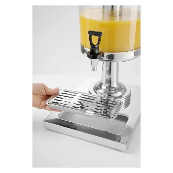 Dispenserul asigura mentinerea bauturilor la temperatura optima prin racirea cu cuburi de gheata, pastrand prospetimea si savoarea acestora pentru perioade indelungate. Containerul transparent din policarbonat permite vizualizarea rapida a cantitatii disponibile, facilitand gestionarea si reumplerea. Robinetul antipicurare previne scurgerile, oferind un control precis al turnarii, in timp ce tava de picurare usor de curatat contribuie la un mediu igienic si ordonat.
