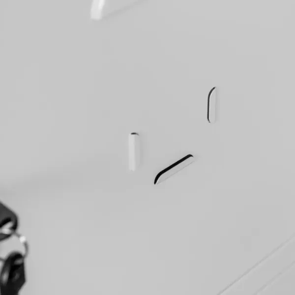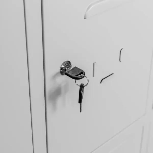 Construcția robustă din blachă metalică vopsită electrostatic oferă rezistență la coroziune și durabilitate pe termen lung. Dulapul este echipat cu zăvoare cilindrice și chei pentru securizarea obiectelor personale, iar orificiile de ventilație asigură circulația aerului, prevenind apariția umidității și mirosurilor neplăcute.