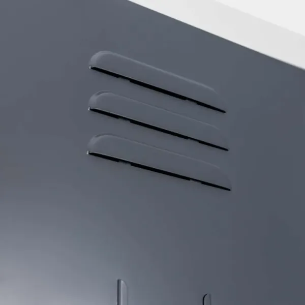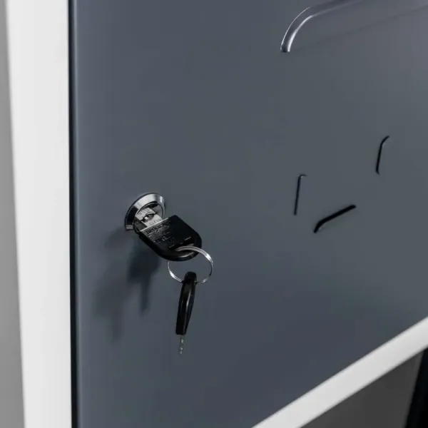 Construcția robustă din tablă metalică vopsită electrostatic asigură rezistență la uz intens și coroziune. Fiecare compartiment se închide cu zăvor cilindric și include două chei, garantând protecție și confidențialitate. Frontul grafit conferă dulapului un aspect elegant, potrivit pentru diverse medii profesionale.