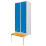 Dulap BHP vestiar pe baza cu banca, 2 usi, S-80 cm, gri, 80x80x223 cm
