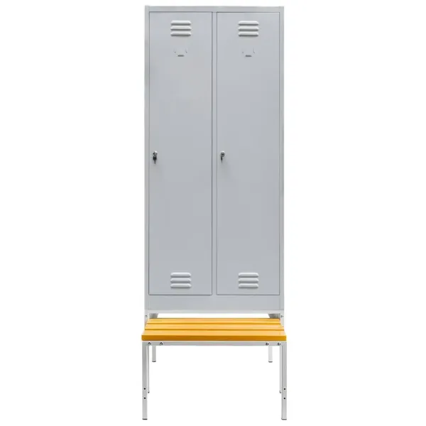 Dulap BHP vestiar pe baza cu banca extensibila, 2 usi, S-80 cm, gri, 80x80x223 cm