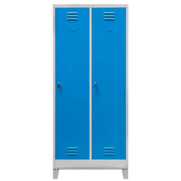 Dulap BHP vestiar pe baza cu compartimente, cu picioare, 2 usi, S-80 cm, gri/albastru, 80x50x190 cm
