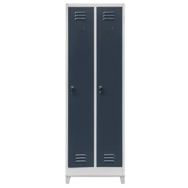 Modelul pe baza cu picioare ridica dulapul de la sol, facilitand curatarea spatiului si prevenind contactul cu umezeala. Cele doua usi permit acces rapid si organizat la hainele si echipamentele angajatilor. Interiorul compartimentat asigura separarea hainelor de lucru de cele personale, iar ventilatia eficienta reduce aparitia mirosurilor neplacute si a umiditatii.