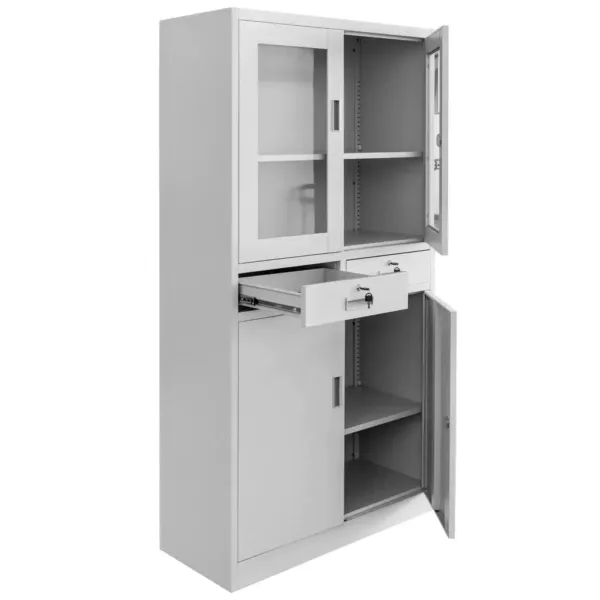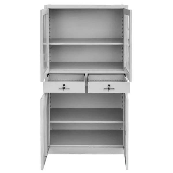 Dulap birou cu 2 sertare si usi vitrate 185x40x90 cm, gri – Solutia ideala pentru organizarea eficienta a documentelor