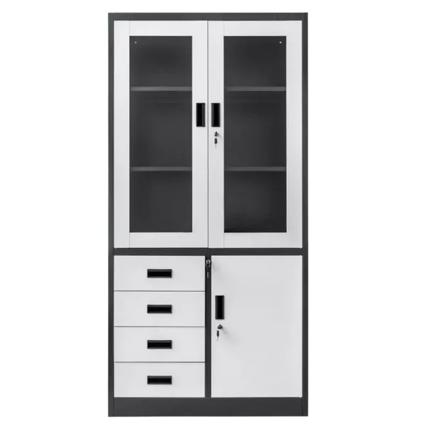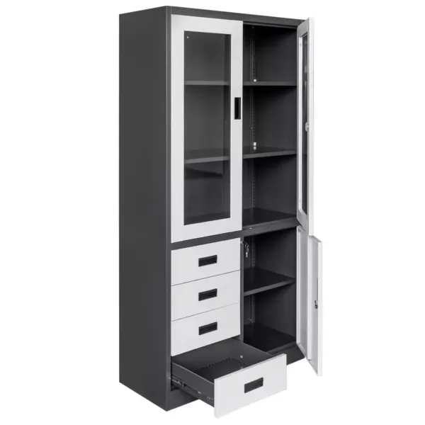 Dulap birou cu 4 sertare si usi vitrate 185x40x90 cm – organizare eficienta si siguranta sporita