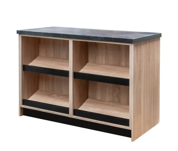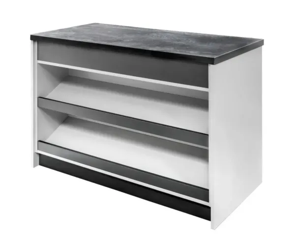 Folosirea acestui dulap cu blat de servire optimizează fluxul de lucru și facilitează vânzarea impulsivă, oferind acces rapid la produse precum dulciuri, băuturi sau materiale promoționale. Blatul robust și finisajul de calitate superioară asigură durabilitate, rezistență la zgârieturi și ușurință în întreținere, fiind potrivit pentru spații cu trafic intens.