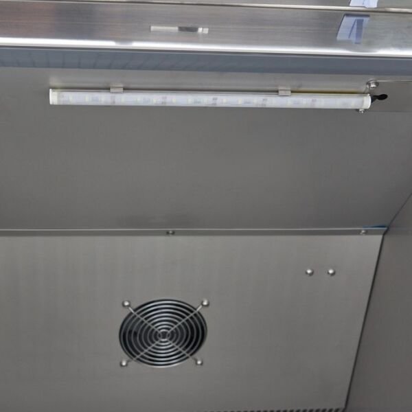 Acest dulap frigorific profesional este echipat cu un sistem de racire static cu ventilator, care mentine constant temperatura interioara intre -2°C si 10°C. Controlul digital cu afisaj LED permite ajustarea rapida a parametrilor si monitorizarea precisa a conditiilor de pastrare, garantand prospetimea alimentelor in orice moment.