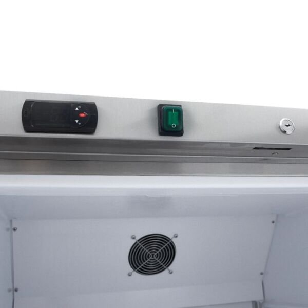 Acest dulap frigorific profesional este echipat cu un sistem de răcire ventilat, care asigură o distribuție uniformă a temperaturii în interior, prevenind diferențele mari de temperatură între rafturi. Astfel, alimentele și ingredientele sunt păstrate în condiții optime, fără riscul de alterare. Intervalul de temperatură reglabil între -2°C și +10°C permite adaptarea rapidă în funcție de tipul produselor depozitate.