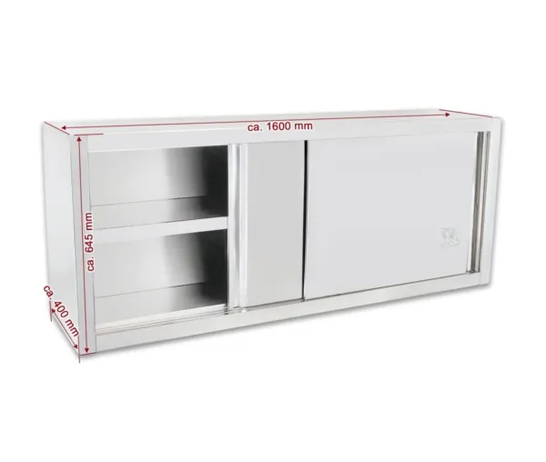 Dulap inox suspendat de perete, 2 polite, 2 usi glisante, 1600x400x645 mm