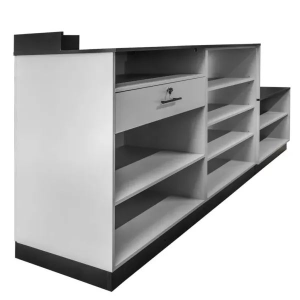 Realizat din materiale rezistente, dulapul ofera stabilitate si durabilitate pe termen lung. Dimensiunile generoase de 300 cm lungime si 60 cm adancime permit expunerea diversificata a produselor si organizarea eficienta a articolelor de vanzare. Inaltimea variabila (70 – 120 cm) face ca piesa de mobilier sa fie versatila si adaptabila diferitelor tipuri de utilizare, fie ca este vorba de spatii comerciale mici sau suprafete de vanzare extinse.