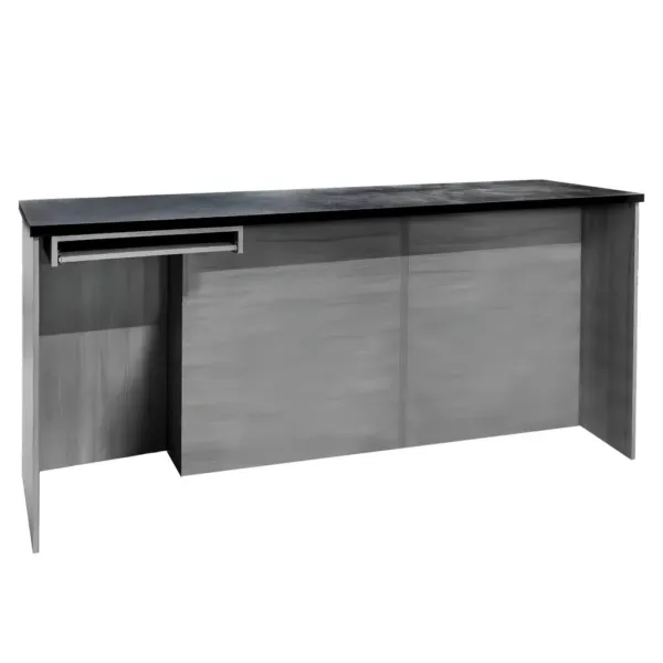 Construcția din placă de mobilier laminată de 18 mm și blat de 36 mm asigură rezistență crescută la uzură, zgârieturi și murdărie, garantând funcționalitate pe termen lung. Finisajul ulm liberty conferă un aspect elegant și profesional, potrivit pentru diverse stiluri de amenajare a magazinelor și spațiilor comerciale.