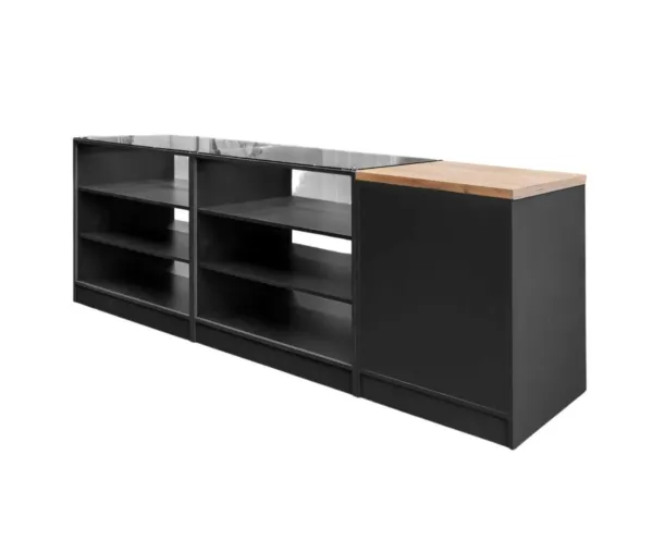 Folosirea acestui dulap magazin crește eficiența spațiului comercial și îmbunătățește experiența clienților. Blatul rezistent și compartimentele bine gândite permit expunerea și depozitarea facilă a produselor, în timp ce designul modern asigură durabilitate și ușurință în întreținere, potrivit pentru puncte cu trafic intens.