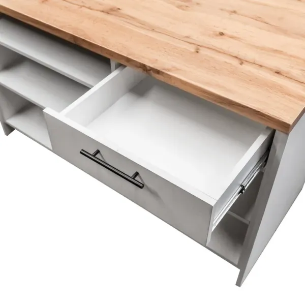 Acest dulap magazin a fost conceput pentru a raspunde provocarilor spatiilor cu trafic intens. Blatul rezistent ofera suficient loc pentru echipamente de lucru si articole promotionale, in timp ce rafturile interioare faciliteaza accesul rapid la produse si documente. Sertarul integrat asigura siguranta incasarilor si o organizare mai buna a activitatilor zilnice.