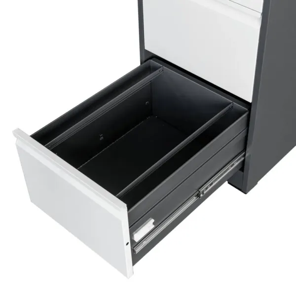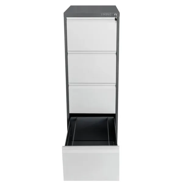 Dotat cu patru sertare spatioase si mecanisme de glisare de inalta calitate, acest dulap permite accesul facil si organizarea eficienta a documentatiei. Functia de blocare a deschiderii multiple asigura stabilitatea si previne accidentele. Un astfel de mobilier metalic este alegerea ideala pentru birouri, scoli, clinici, restaurante si alte spatii unde organizarea si pastrarea in siguranta a documentelor sunt prioritare.
