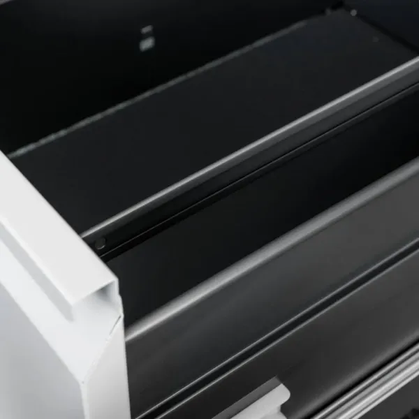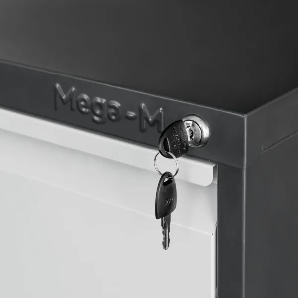 Dulapul metalic WENUS cu 4 sertare, finisat in nuanta grafit cu fronturi gri, imbina durabilitatea cu un design modern si elegant. Fabricat din otel tratat prin vopsire in camp electrostatic, acesta este rezistent la umiditate, temperaturi extreme si coroziune, asigurand o durata lunga de utilizare. Prin sistemul de inchidere centralizat, toate sertarele pot fi securizate simultan, oferind confidentialitate documentelor importante.