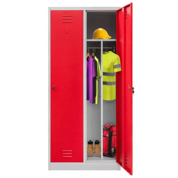 Dulap vestiar cu 2 usi si compartimente, gri/rosu 180x50x80 cm – Organizare și siguranță pentru orice spațiu profesional