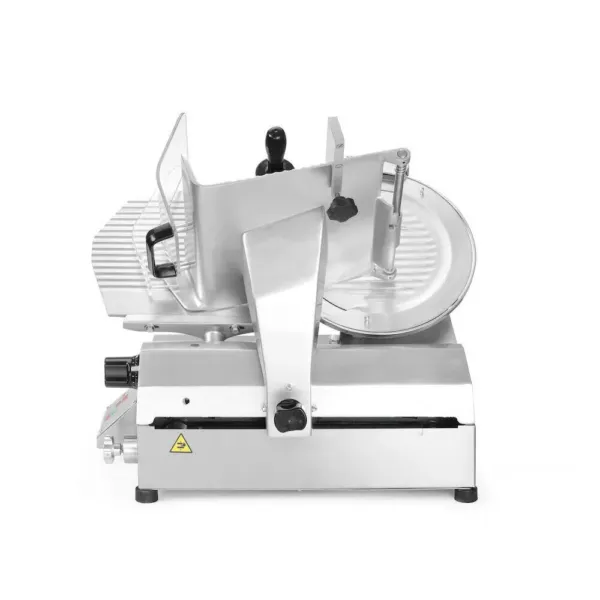 Proiectat pentru a respecta cele mai stricte norme de siguranta, acest aparat de feliat mezeluri dispune de multiple sisteme de protectie, printre care blocarea automata in timpul deschiderii sau dezasamblarii componentelor, precum si protectia lamei prin inel permanent montat. Caruciorul poate fi dezasamblat doar in conditii de siguranta, iar tava suport din inox este compatibila cu masina de spalat vase, ceea ce faciliteaza o igienizare eficienta si rapida.