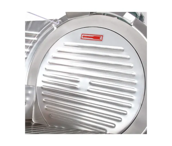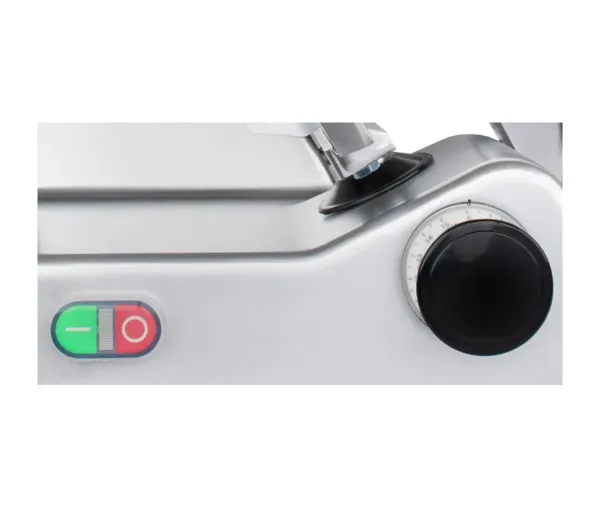 Acest feliator carne profesional este echipat cu un comutator de siguranță, care împiedică repornirea automată a aparatului în cazul unei pene de curent, protejând astfel utilizatorii și evitând accidentele nedorite. Feliatorul respectă toate normativele CE, garantând standardele de siguranță și conformitate necesare pentru echipamentele utilizate în mediile comerciale.