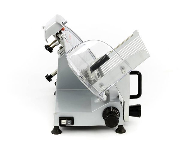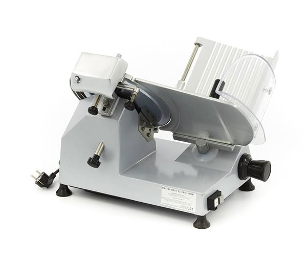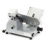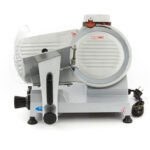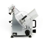 - Diametrul discului de tăiere este de 250 mm, iar grosimea de tăiere poate fi ajustată între 1 și 12 mm, oferind flexibilitate pentru diverse tipuri de mezeluri.