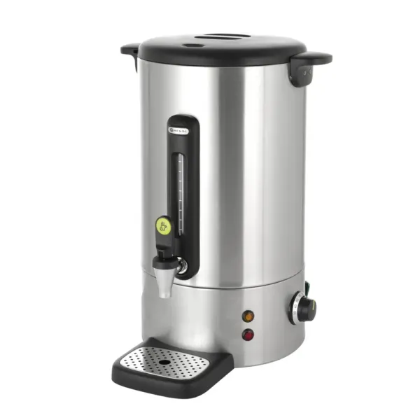 Cu o capacitate generoasa de 16 litri si un termostat reglabil intre 30°C si 100°C, fierbatorul permite incalzirea si mentinerea bauturilor la temperatura optima pentru servire. Este ideal pentru prepararea vinului fiert sau a ceaiurilor, fiind echipamentul esential in zonele de servire intens circulata.
