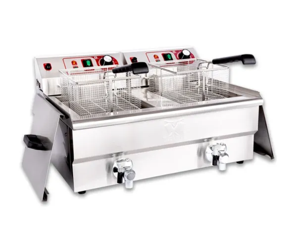 Friteuza electrica profesionala 13+13 litri, 2x3000W, 230V cu robinet