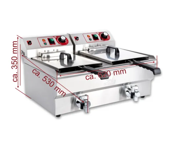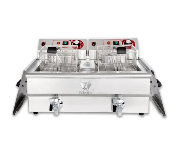 Friteuza electrica profesionala 13+13 litri, 2x5000W, 400V cu robinet
