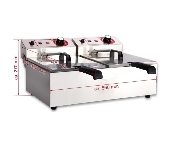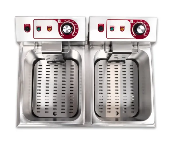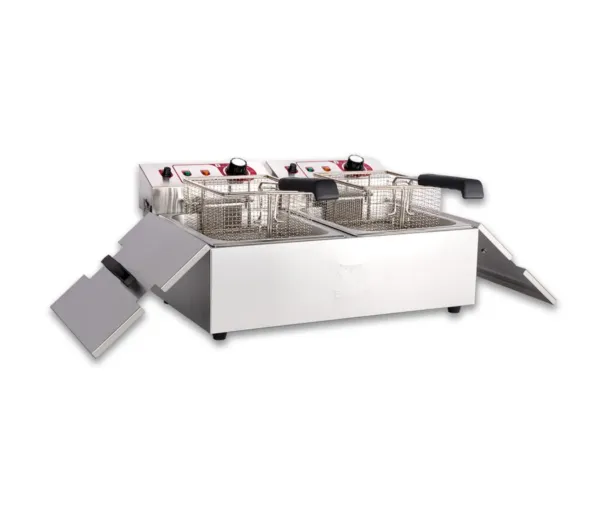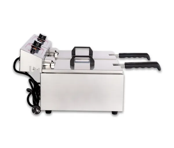 Fie că operezi un restaurant aglomerat, un food truck sau o pizzerie, Friteuza electrică 9+9L va aduce un plus de eficiență în bucătăria ta. Performanța superioară, capacitatea mare și designul compact fac din această friteuză un partener de încredere pentru orice afacere din industria alimentară. Adaugă o friteuza cartofi profesionala în echipamentele tale și vei observa îmbunătățirea semnificativă a timpilor de gătire și a calității preparatelor.