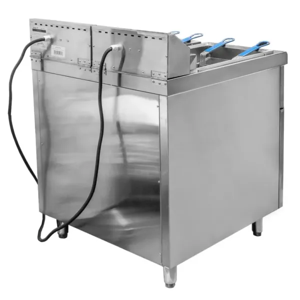 Conceputa pentru utilizare intensiva, friteuza electrica profesionala dubla cu dulap integrat dispune de elemente de incalzire puternice si eficiente energetic. Termostatul reglabil permite mentinerea unei temperaturi constante, asigurand rezultate perfecte la fiecare utilizare. Designul ergonomic si supapa de golire faciliteaza curatarea si intretinerea zilnica, iar dulapul inferior ofera spatiu suplimentar pentru depozitarea accesoriilor sau a recipientelor pentru ulei.