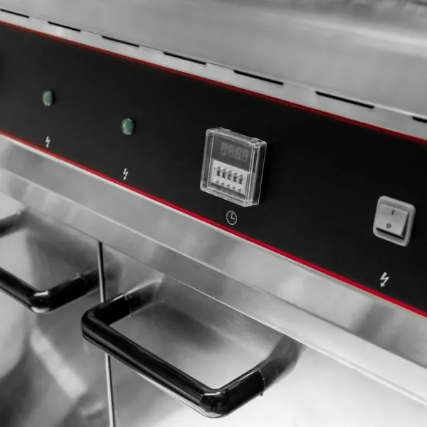 Prin constructia sa din inox alimentar de inalta calitate, aceasta friteuza ofera o rezistenta excelenta la uzura, coroziune si impact mecanic. Cele doua cuve independente permit prajirea simultana a unor cantitati mari de produse, optimizand timpii de lucru si crescand eficienta operationala. Fiecare zona de gatire este controlata individual, ceea ce permite reglarea precisa a temperaturii in functie de tipul alimentelor preparate.