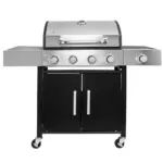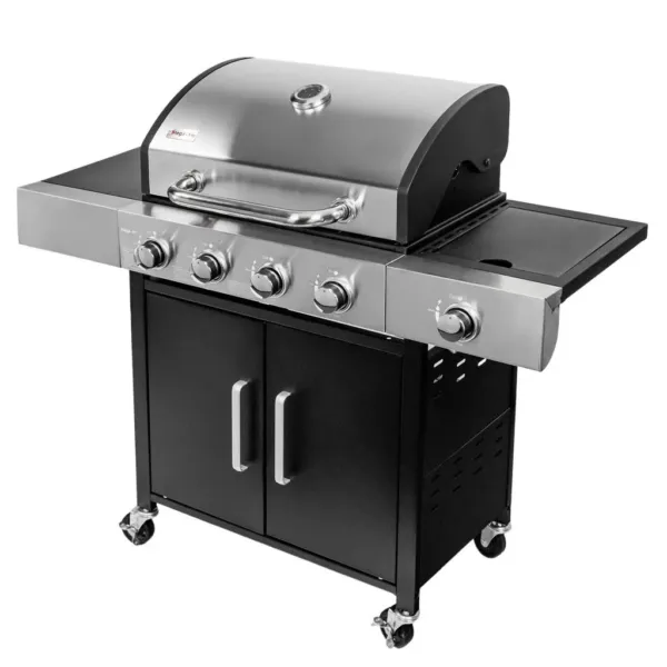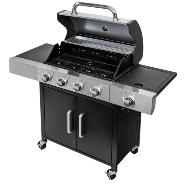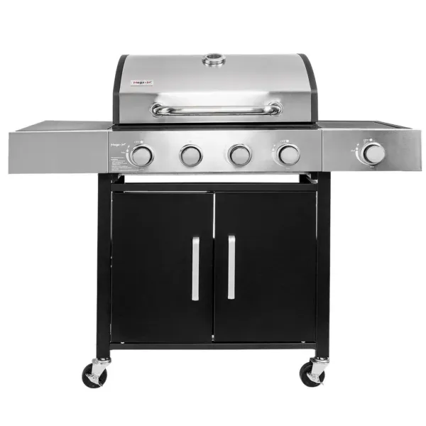 Gratar de gradina pe gaz 4+1 cu blat lateral si capac inox – echilibrul perfect intre stil si functionalitate