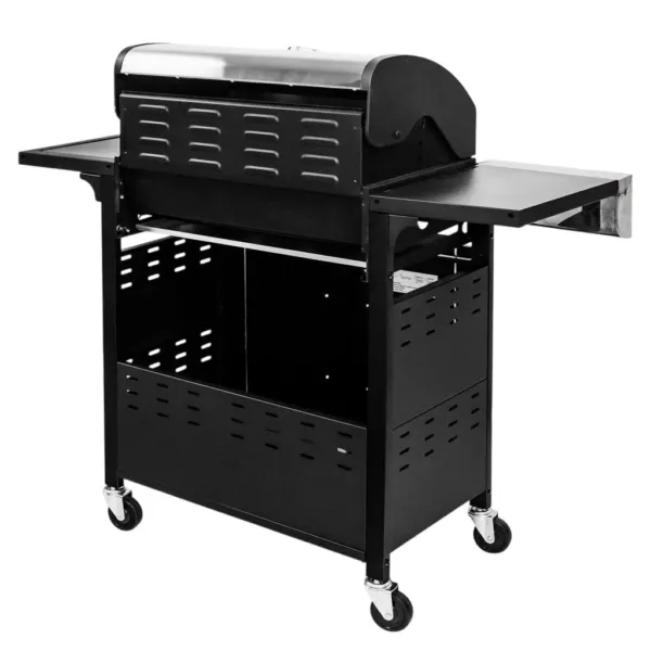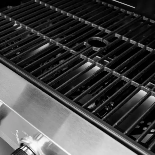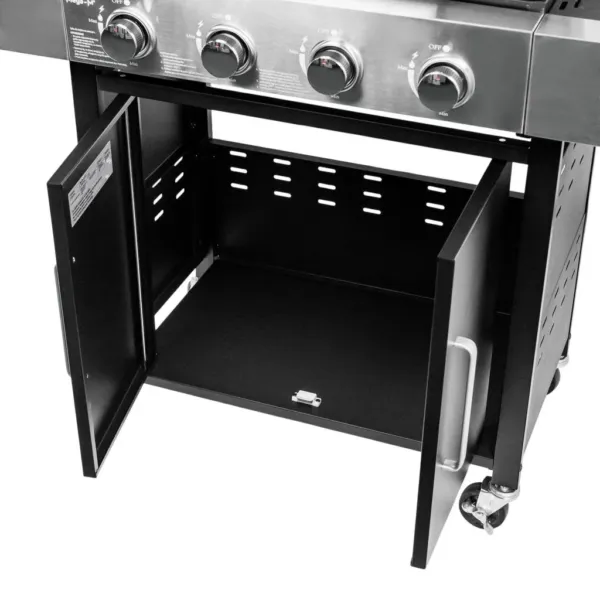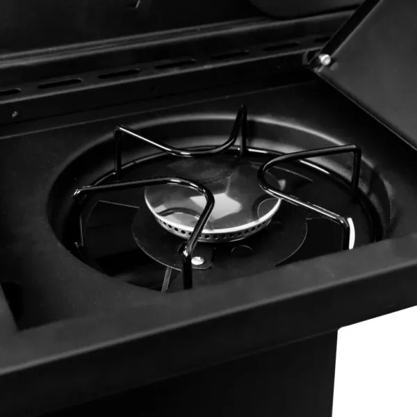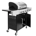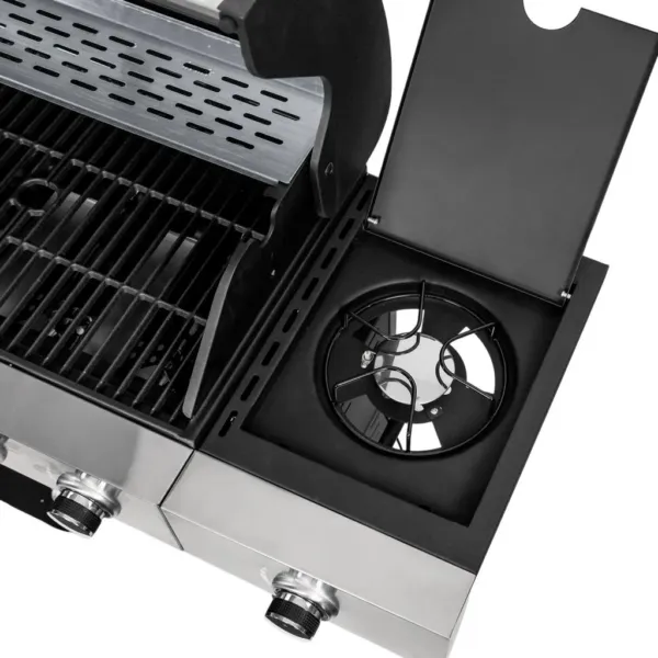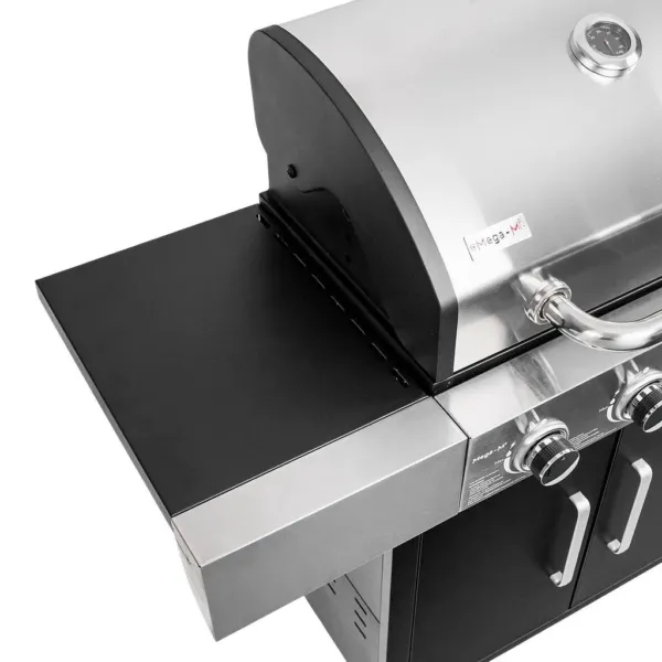Fabricat din otel vopsit in camp electrostatic si inox de inalta calitate, acest gratar pe gaz profesional garanteaza rezistenta la temperaturi ridicate si la conditiile exterioare dificile. Designul modern, cu finisaje in negru si inox, se integreaza perfect in orice spatiu exterior – de la gradini private pana la terase comerciale si zone de servire in aer liber. Blatul lateral functional ofera spatiu suplimentar pentru pregatirea ingredientelor si organizarea accesoriilor de gatit.