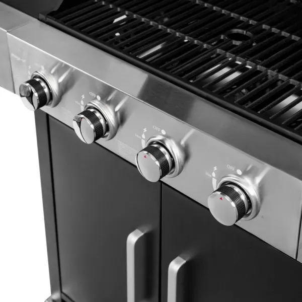Gratarul ofera o putere totala de 13 kW, distribuind caldura uniform prin cele patru arzatoare independente si arzatorul lateral suplimentar. Sistemul de aprindere rapida si butoanele ergonomice permit reglarea exacta a temperaturii pentru fiecare zona de gatit. Astfel, poti prepara simultan carne, peste, legume sau alte produse, fara pierderi de caldura si fara riscul arderii alimentelor.