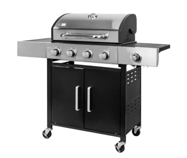 Gratar de gradina pe gaz 4+1 cu blat lateral, usa si capac inox – combinatia perfecta intre eleganta si functionalitate