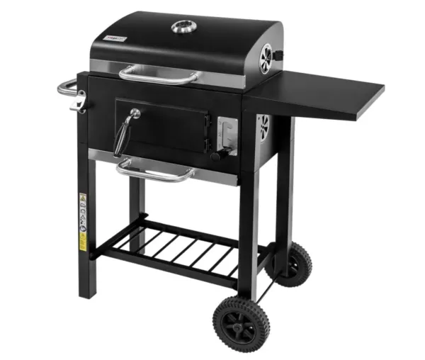 Gratarul este echipat cu patru roti rezistente, dintre care doua dotate cu sistem de blocare, ceea ce permite deplasarea usoara si stabilitatea in timpul utilizarii. Supapa de siguranta si peretii laterali inchisi asigura controlul presiunii gazului si protectie sporita in exploatare. Suprafetele netede si componentele detasabile faciliteaza curatarea, pastrand echipamentul intr-o stare impecabila pentru o utilizare indelungata.