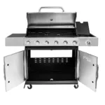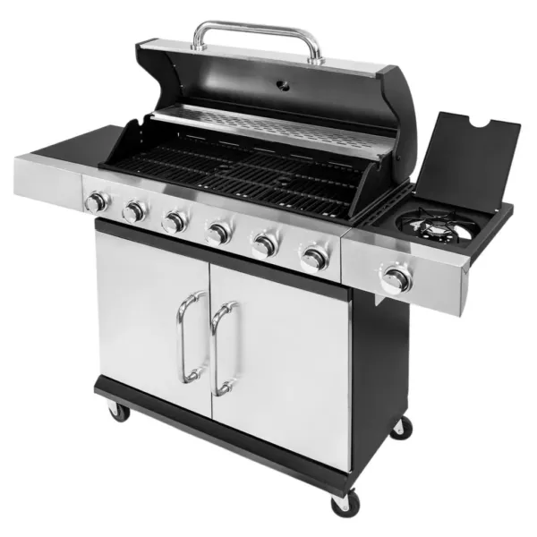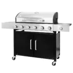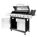 Gratar de gradina pe gaz 6+1 cu blat lateral, usa si capac inox – putere, spatiu si eleganta intr-un singur echipament