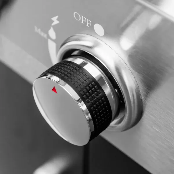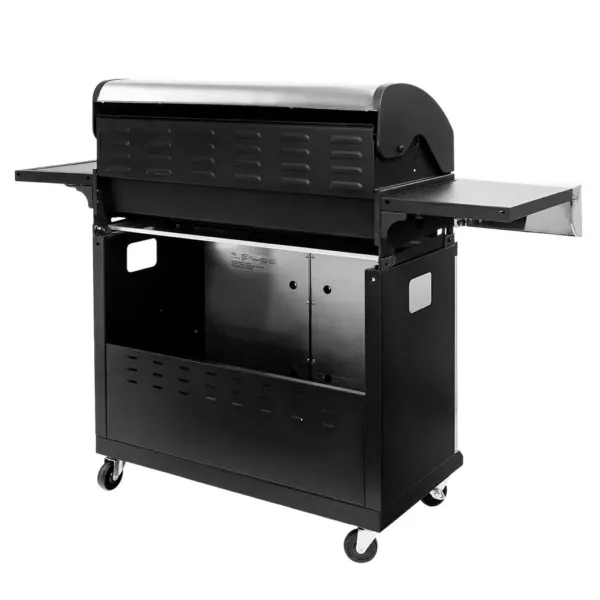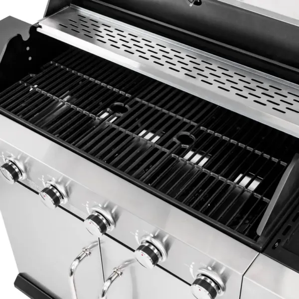 Fabricat din otel inoxidabil combinat cu otel vopsit in camp electrostatic, acest gratar pe gaz profesional se remarca prin durabilitate si rezistenta la conditiile exterioare. Capacul si usa frontala din inox protejeaza componentele interne si contribuie la mentinerea temperaturii constante in timpul gatirii. Blatul lateral ofera o suprafata practica pentru depozitarea accesoriilor, ingredientelor sau vaselor, optimizand fluxul de lucru in timpul prepararii alimentelor.