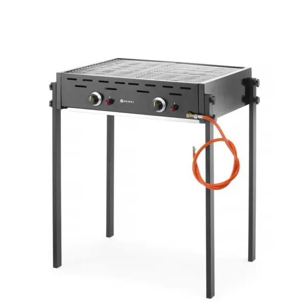 Supapele automate din cupru, impreuna cu aprinderea piezo si capacele de protectie pentru arzatoare, contribuie la un nivel superior de siguranta in utilizare, oferind totodata o distributie uniforma a caldurii. Carcasa robusta din otel inoxidabil acoperita cu email negru, completata de un design elegant si picioare stabile, garanteaza atat estetica, cat si rezistenta in medii profesionale solicitante.