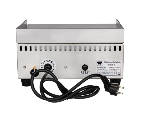 Gratarul electric profesional este prevazut cu un sertar pentru colectarea grasimii, ceea ce faciliteaza un proces de gatire mai curat si rapid. Construit din otel inoxidabil, atat carcasa, cat si suprafata de gatire sunt usor de curatat si rezistente la coroziune. Picioarele din cauciuc ofera stabilitate, prevenind alunecarea si asigurand siguranta utilizatorului.