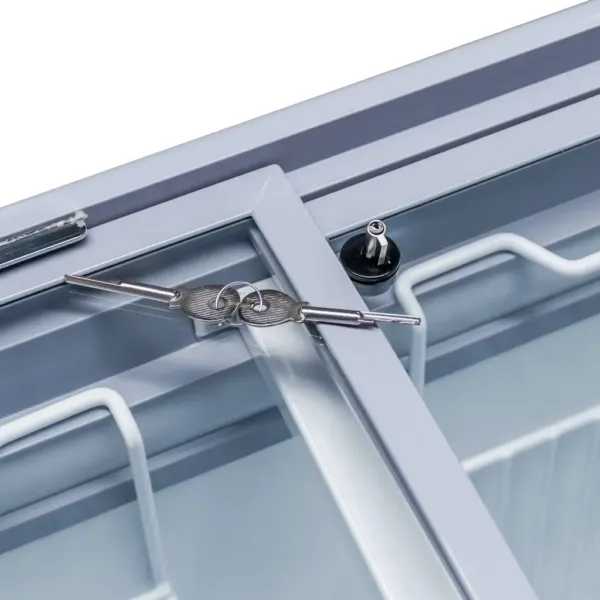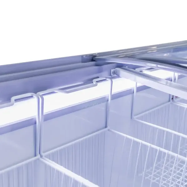 În plus, capacul din sticlă glisantă facilitează accesul la produse, fiind potrivită atât pentru spații comerciale, cât și pentru depozite sau bucătării profesionale.