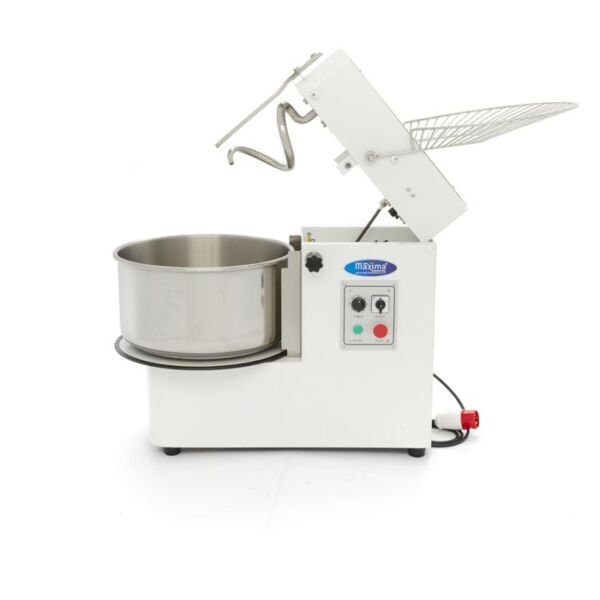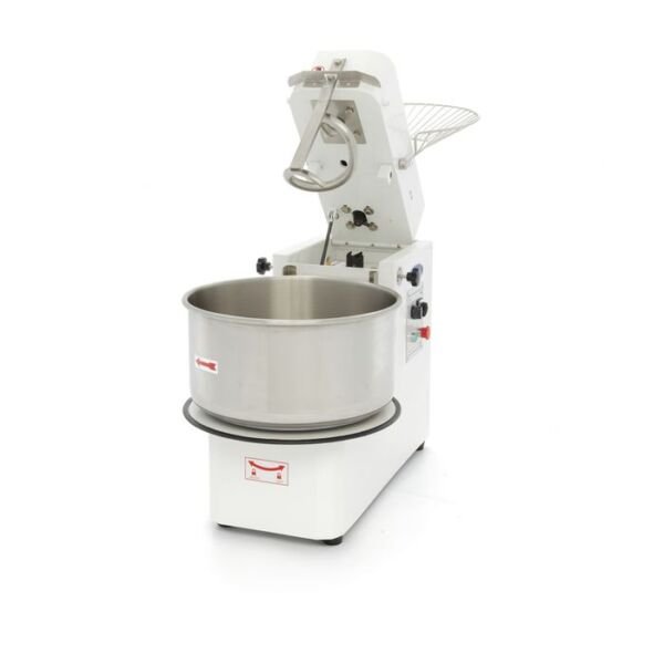 Cu o carcasă din inox și metal vopsit rezistent, malaxorul profesional este durabil și ușor de curățat. Capul rabatabil și cuva detașabilă facilitează adăugarea ingredientelor și întreținerea zilnică. Timer-ul integrat permite programarea duratei de frământare, în timp ce grilajul de siguranță oprește automat funcționarea dacă echipamentul nu este asamblat corect, oferind un nivel ridicat de protecție pentru operatori.
