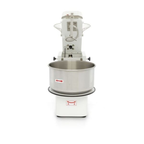 Alimentat la 400V și echipat cu motor de 1500W, acest malaxor pentru aluat susține producția continuă fără întreruperi. Capacitatea de procesare între 6 și 30 kg îl face potrivit atât pentru volume mici, cât și pentru producție extinsă, asigurând rezultate constante și uniformitate în fiecare lot de aluat. Transmisia prin curele și viteza constantă a cuvei garantează performanță și durabilitate pe termen lung.