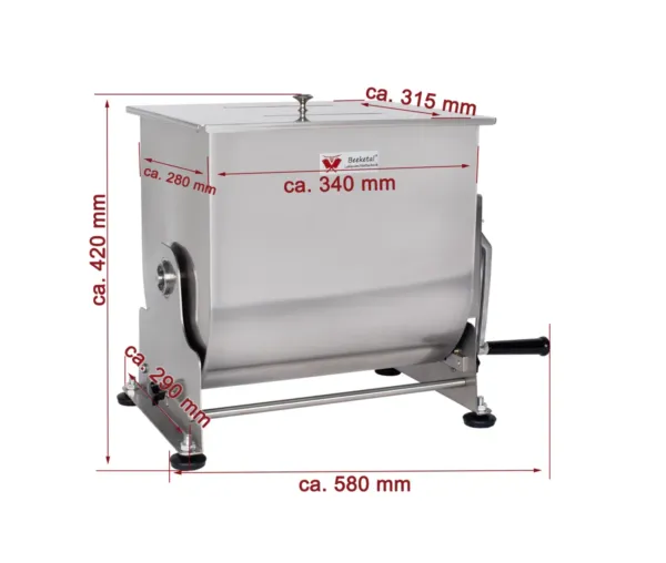 - Dimensiuni compacte: Cu dimensiuni exterioare de 580 x 290 x 420 mm și dimensiuni interioare de 339 x 280 x 335 mm, acest malaxor se integrează ușor în orice spațiu de lucru, fără a compromite performanța.