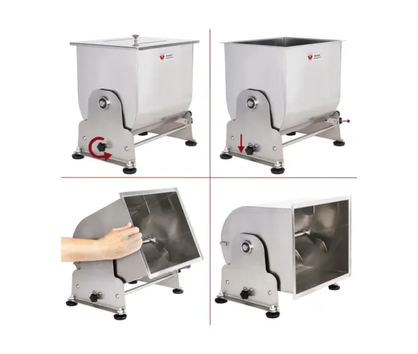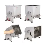 Malaxorul Carne Manual de 30 Litri din oțel inoxidabil cu cuva înclinată este alegerea perfectă pentru profesioniștii din domeniul culinar care caută un echipament fiabil, eficient și ușor de utilizat. Prin integrarea acestui malaxor carne profesional în fluxul de lucru al bucătăriei tale, vei putea să te asiguri că ingredientele sunt preparate rapid și uniform, contribuind la creșterea productivității și calității produselor finale.