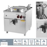 Marmita BI90/150G este echipată cu un sistem de încălzire indirectă, care garantează o distribuire uniformă a căldurii, evitând riscul de ardere a preparatelor și asigurând un proces de gătire constant și eficient. Aceasta funcționează pe alimentare cu gaz, având o putere de 22,5 kW, ceea ce o face extrem de eficientă în condiții de utilizare continuă.
