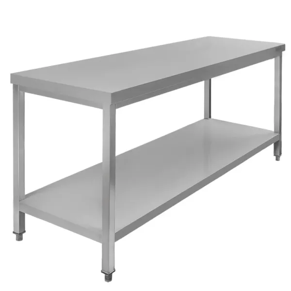 Masa centrala inox cu polita 160x60x85 cm poate fi folosita ca statie de lucru, masa de preparare sau suport pentru echipamente in restaurante, baruri, cofetarii, laboratoare de patiserie, cantine sau magazine alimentare. Structura sa deschisa si constructia solida faciliteaza organizarea spatiului de lucru si imbunatateste fluxul operational al bucatariei.