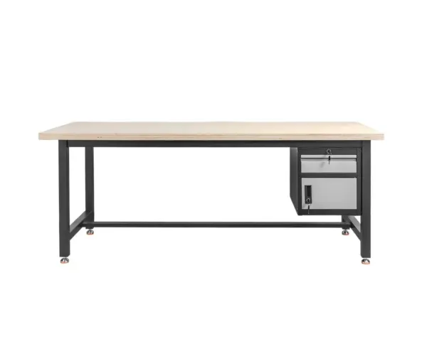 Acest banc de lucru compact combina durabilitatea cu functionalitatea. Blatul de lucru realizat din placi de MDF si sklejka este rezistent la uzura si ofera suport solid pentru diverse activitati tehnice. Cele doua sertare inchise pe cheie permit pastrarea in siguranta a uneltelor, iar structura metalica vopsita in camp electrostatic asigura stabilitate si protectie impotriva coroziunii. Spatiul limitat nu mai reprezinta o problema datorita designului ergonomic care optimizeaza utilizarea fiecarui centimetru disponibil.