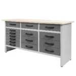 Gama de banc de lucru este creata pentru a raspunde celor mai exigente cerinte din ateliere, unitati de productie, garaje si spatii comerciale. Masa de lucru grafit S-200 G-75 H-80 cm impresioneaza prin dimensiunea generoasa a blatului, oferind un spatiu de lucru extins si sigur pentru activitati profesionale. Este o alegere ideala pentru cei care cauta rezistenta, stabilitate si functionalitate la standarde ridicate.