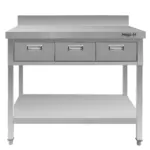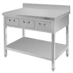 Masa inox perete cu polita si 3 sertare 100x60x85 cm pentru bucatarii profesionale