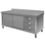 Masa inox perete sudata cu dulap si 3 sertare 180x60x85 cm pentru bucatarii profesionale